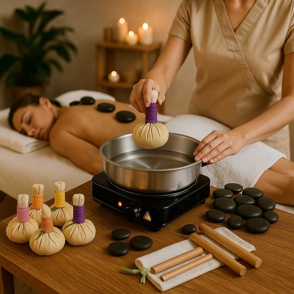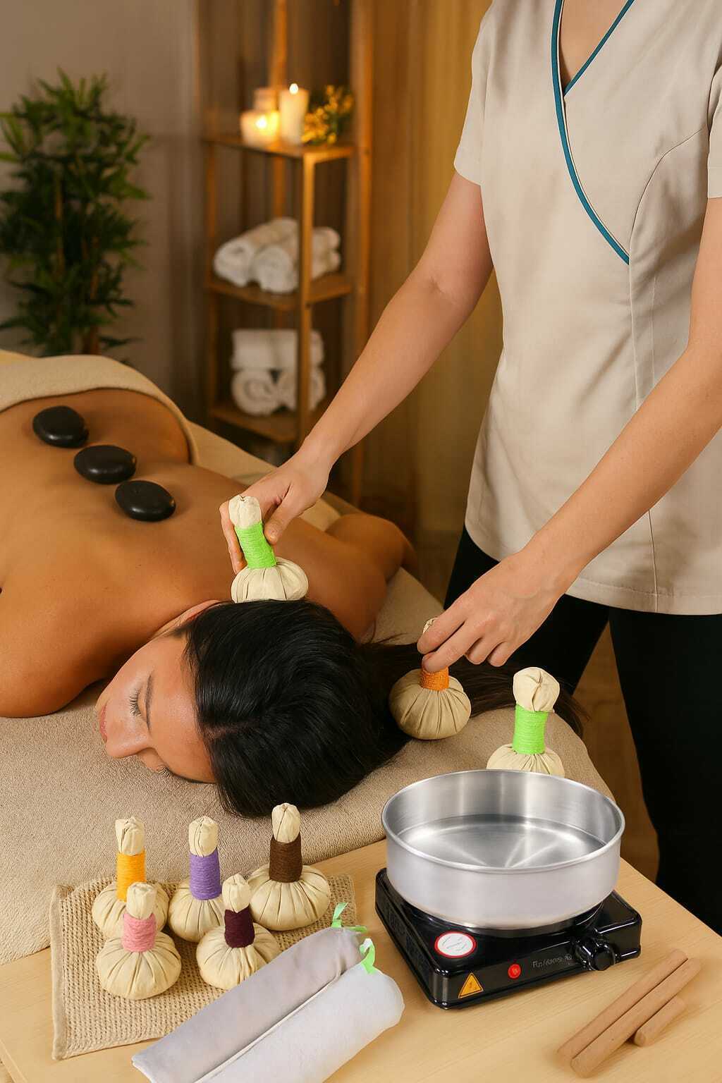 A massagem com pindas chinesas é uma terapia que combina termoterapia, aromaterapia e massagem manual para promover relaxamento profundo e bem-estar. Pequenas bolsas de tecido (pindas) cheias de ervas aromáticas são aquecidas e aplicadas no corpo, liberando suas propriedades e aromas, o que ajuda a aliviar o estresse, relaxar a musculatura, melhorar a circulação, hidratar a pele e harmonizar o equilíbrio energético.